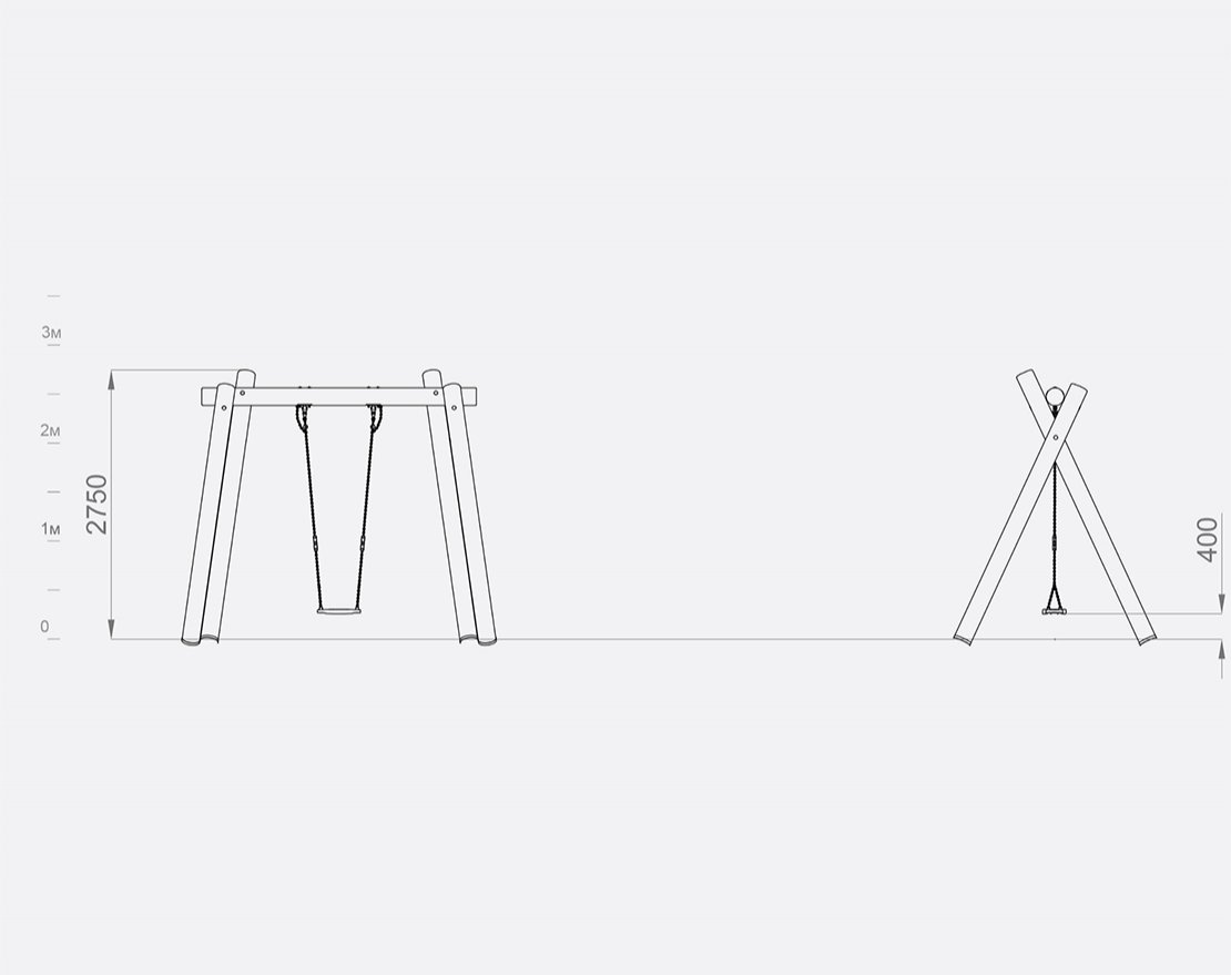 Состоят из опорных стоек, перекладины и сиденья с подвесами. Для большего комфорта, на подвесах установлены пластиковые ручки.
