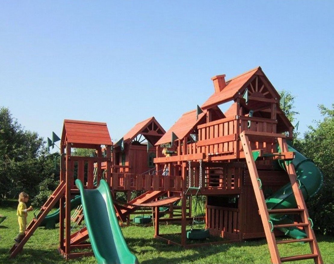 Площадка Столица — самый большой и максимально насыщенный игровыми зонами детский комплекс этой серии, общей площадью 120 м2. Он предоставляет максимум простора для веселья и является флагманом индустрии детских игровых площадок. Игровой комплекс изготовлен из отборных сортов американского кедра и секвойи, которые обладают естественной устойчивостью к гниению, распаду и повреждению насекомыми. В комплектацию входит: семь различных игровых площадок на разных уровнях общей площадью более 19 м2, два встроенных домика с окошками, крыльцом и дверьми, четыре суперпрочные горки различной конструкции, три песочницы и многое другое. Эксклюзивная конструкция мостика соединяет площадки верхнего уровня, а с верхней галереи открывается неповторимый вид.