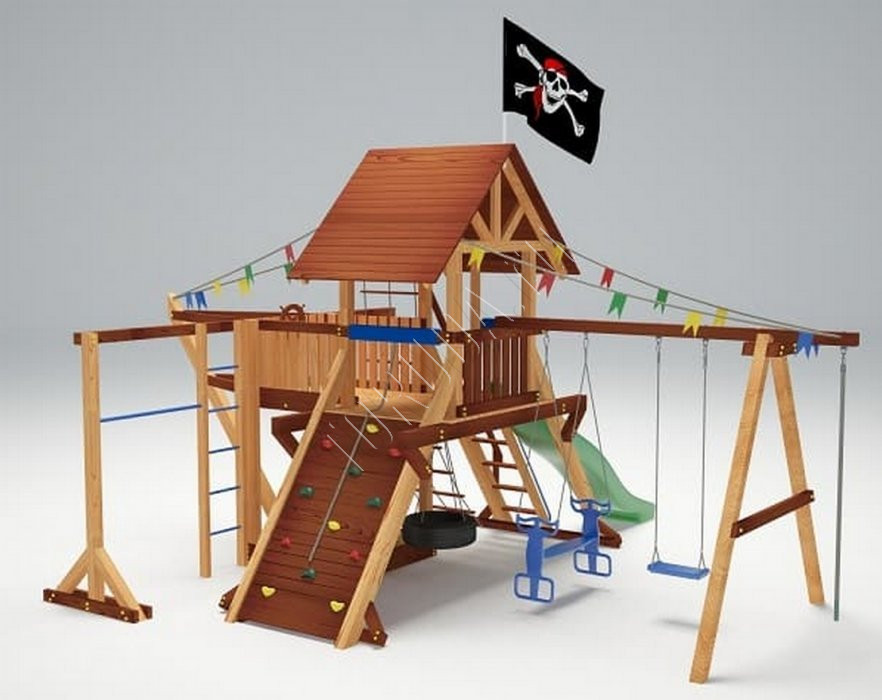 Площадка Галиот 5 обладает довольно широким функционалом (который по желанию можно легко расширить). А на качелях могут кататься даже родители! Детская площадка предназначена для дачи, коттеджа.