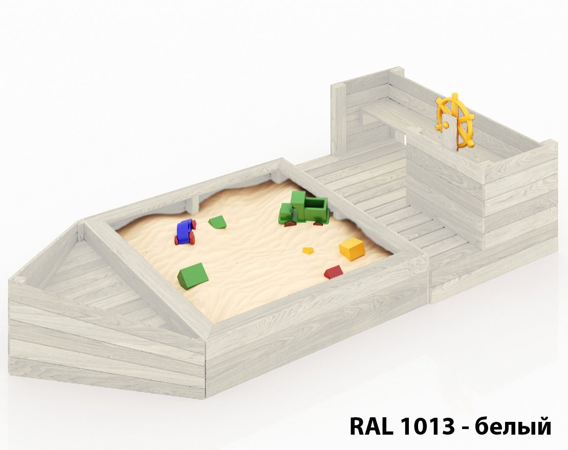 Детская песочница-кораблик и штурманская рубка со штурвалом.