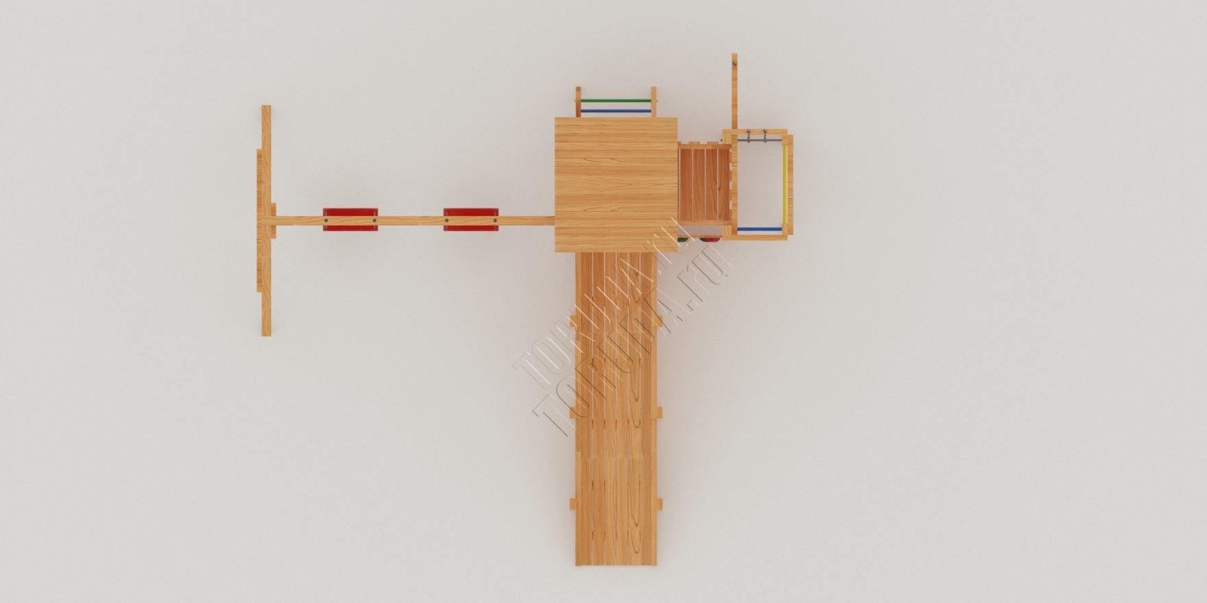 Комплекс безопасен – конструкция, качество древесины и подвижных элементов соответствуют ГОСТ. Основным материалом является экологичный клееный брус, балки которого отшлифованы и имеют закругленные края.