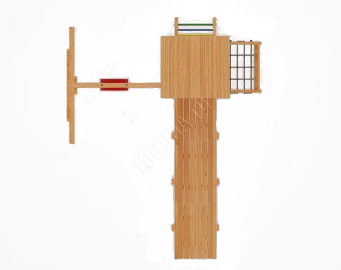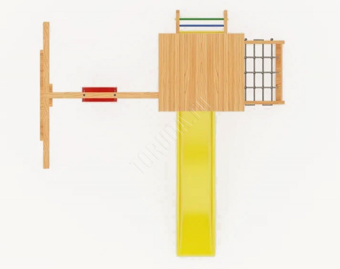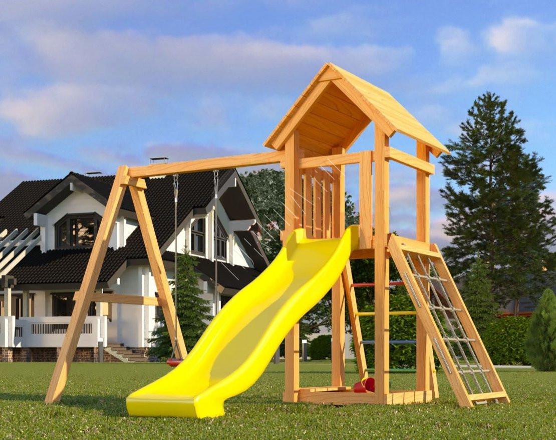 Площадка сохраняет геометрию рамы, содержит натуральные материалы, прошедшие сертификацию. Балки клееного бруса гладкие, острые края скруглены – отсутствие ран и ссадин важнее всего.