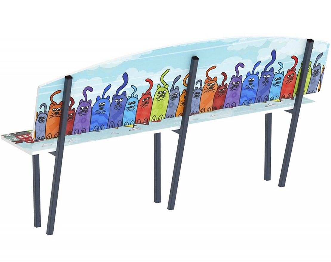 Кромки фанеры отшлифованы и закруглены. Для окраски элементов из влагостойкой фанеры применяется водно-дисперсионное покрытие, устойчивое к атмосферному и химическому воздействию. Покрытие образует стойкую плёнку, которая сохраняет блеск и цвет. На фанерные элементы на UV-принтере нанесено стилизованное изображение износостойкими красками. Финишное покрытие – водно-дисперсионный лак с биоцидной добавкой НАНОСЕРЕБРО.