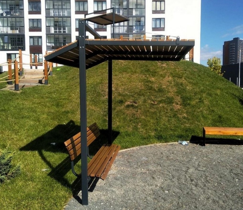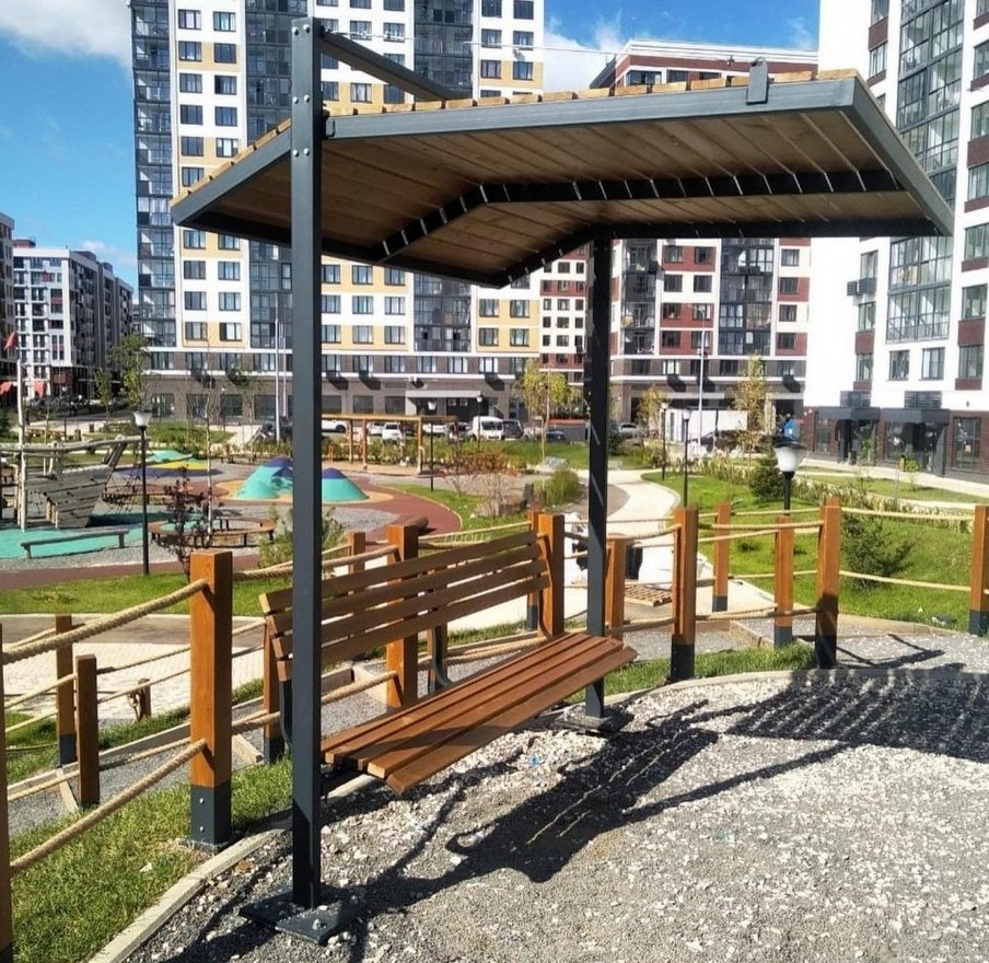 Сиденье и спинка: Брус из хвойных пород древесины. Покрытие - атмосферостойкая лессирующая акриловая пропитка с лаком.