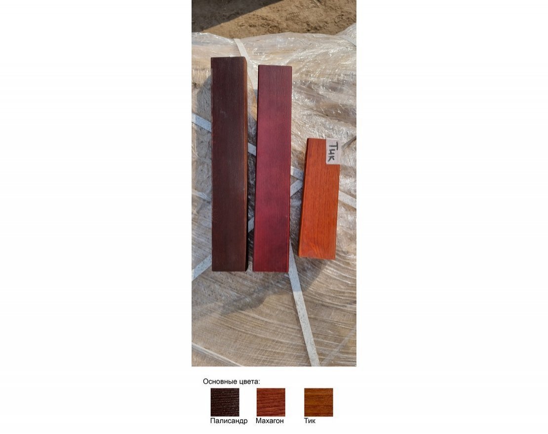Сиденье: Брус из хвойных пород древесины. Покрытие - атмосферостойкая лессирующая акриловая пропитка с лаком. Стандартные цвета: Палисандр, Махагон, Тик.