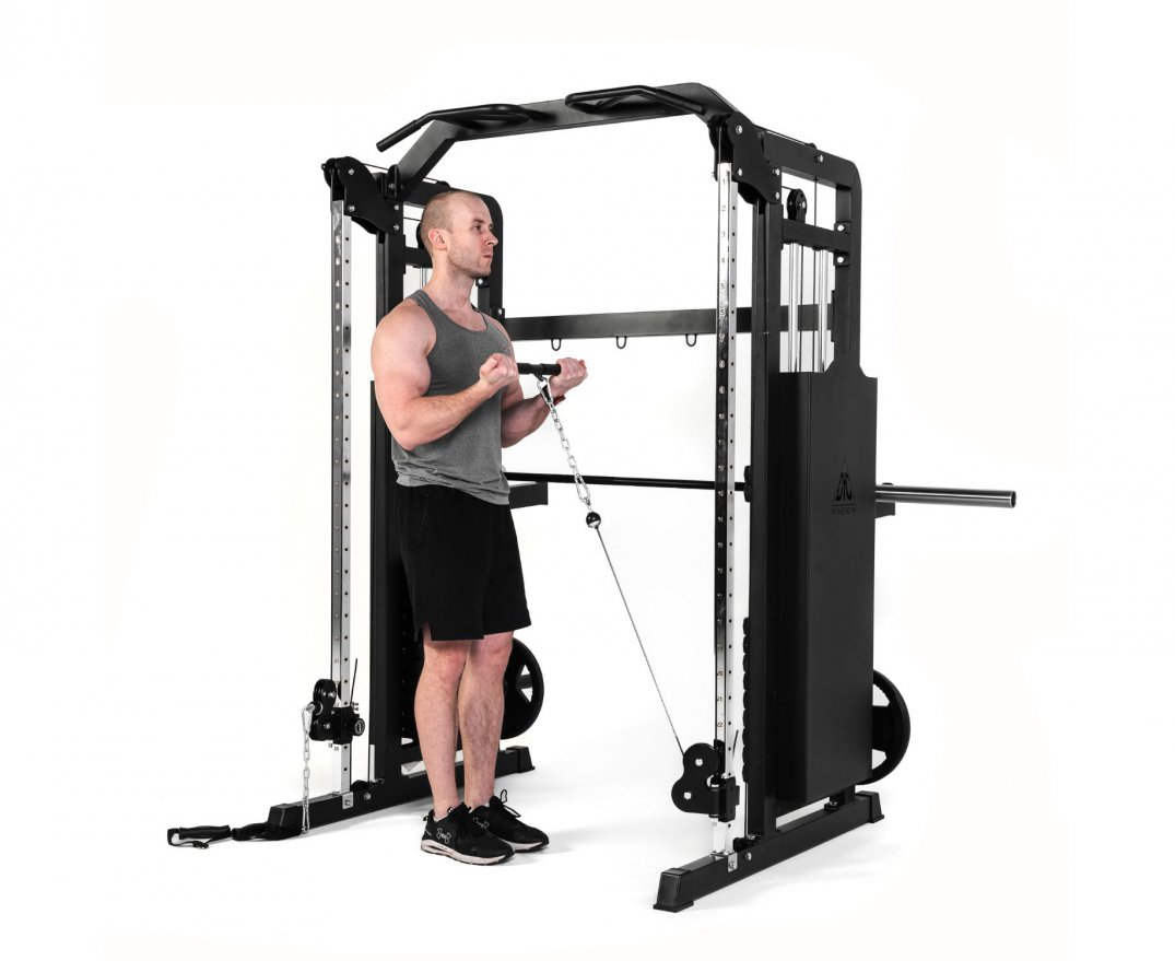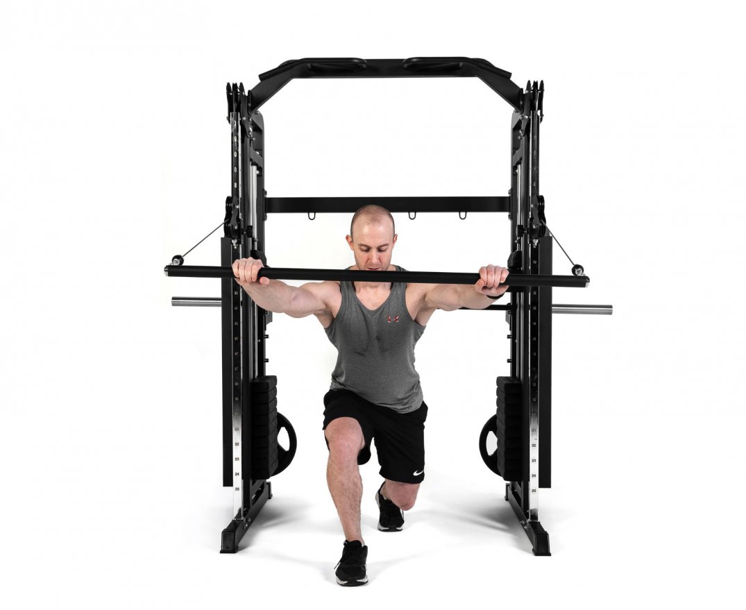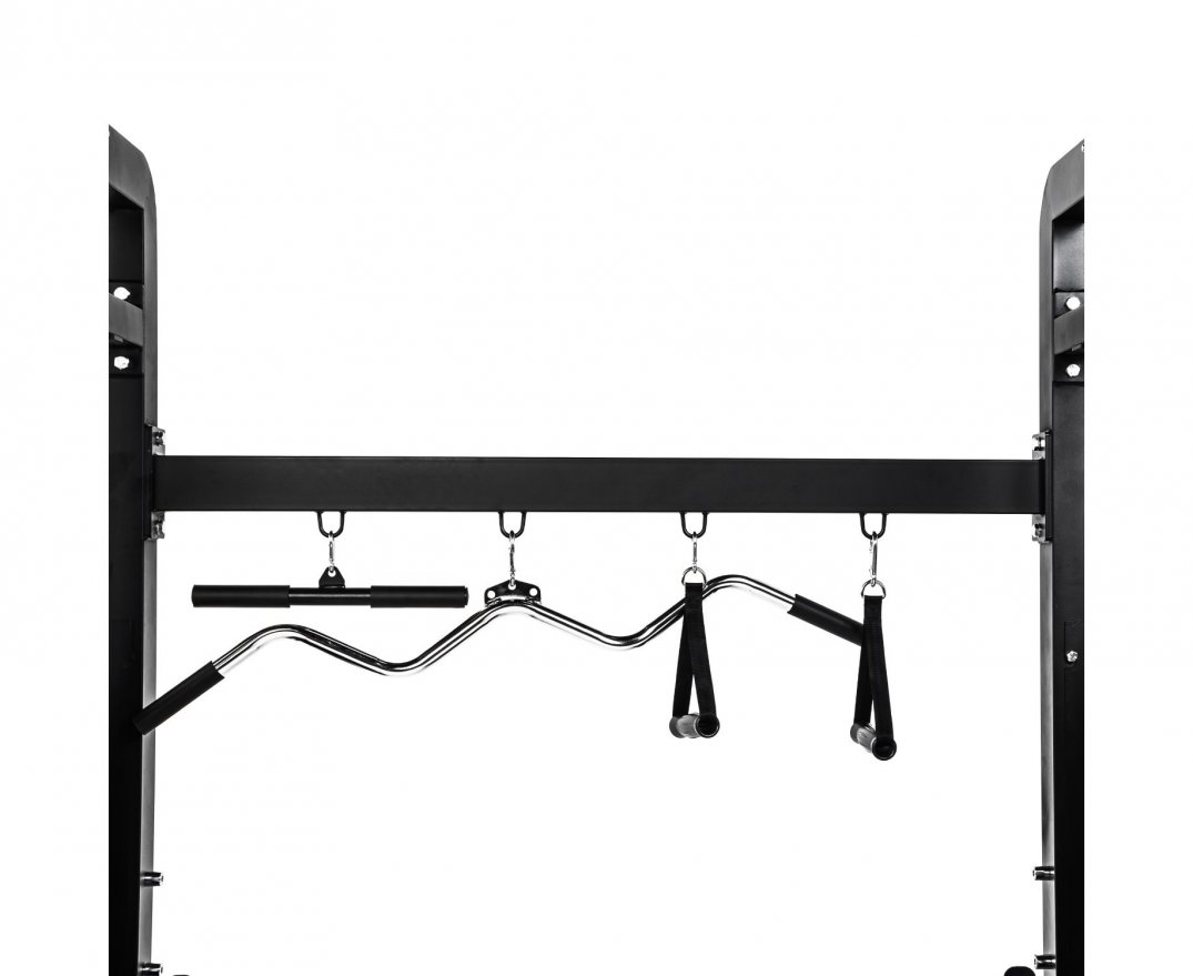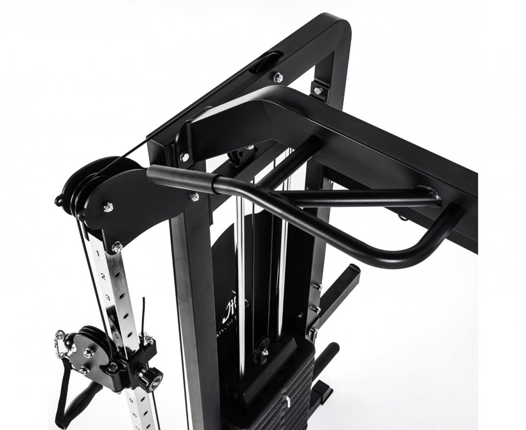 Кроссовер изготовлен из высококачественного стального профиля размером 50 х 50 и 50 х 75 мм. Толщина 1,5 мм. Диаметр тросов 4 мм. В качестве нагрузки используются 2 встроенных стека общим весом 163 кг: по 81,5 кг каждый.
